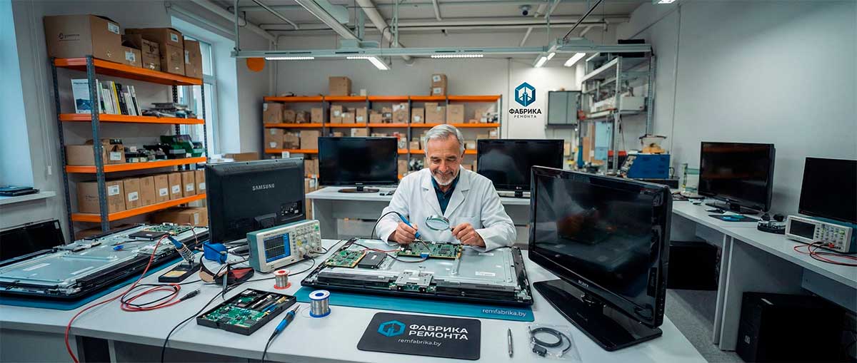 ООО «Фабрика Ремонта» специализируется на восстановлении телевизоров любых марок и моделей — от классических Samsung и LG до редких советских Горизонтов и современных OLED-панелей. Мы знаем, почему телевизоры ломаются, как их восстанавливать и почему это часто дешевле, чем покупка нового.